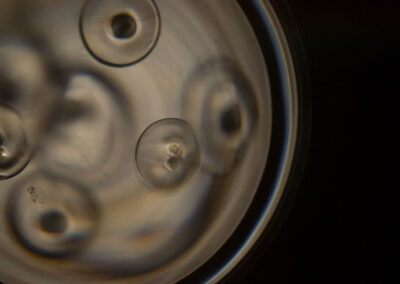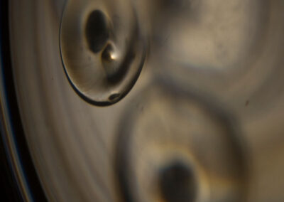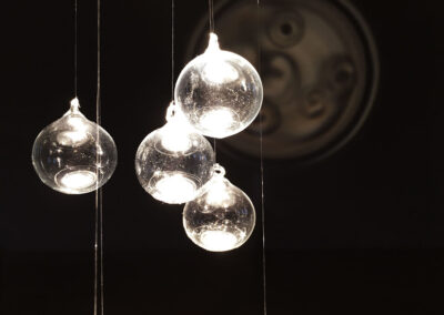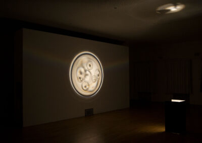 Ein Bild wird mit einem Overheadprojektor im Kreisformat auf eine weiße Wand projiziert. In dem 160 cm großen kreisförmigen Rahmen bewegen sich weitere kleine Kreise regelmäßig wie ein Puls. Sie entstehen durch Glasperlen, die wie ein Mobile an den Rand der Linse des Overheadprojektors befestigt sind und sich durch einen kleinen Ventilator routieren. Das Glasperlenmobile ist von drei schwarzen Wänden verdeckt, sodass der Betrachter zuerst nur das projizierte Bild sieht, wie die Menschen von dem Höhlengleichnis Platons, die in unterirdischen Höhlen leben.