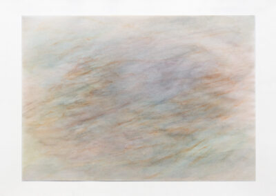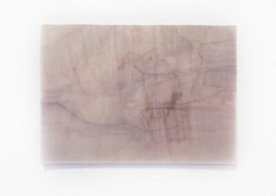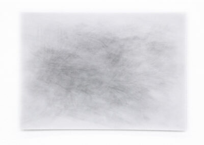 Ich öffne meine Augen und zeichne anhand meiner Erinnerung die Form des Nachbildes auf Transparentpapier. Ich schließe meine Augen, um die Form noch einmal zu überprüfen. Allerdings ist die erste Form bereits verschwunden und ein nächstes Nachbild erscheint und bewegt sich. Um nun dieses Nachbild aufzunehmen, versuche ich die vorherige Zeichnung auf dem Blatt auszuradieren und zeichne das Neue.